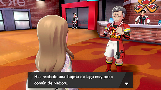 En el Gimnasio de Ciudad Pistón os encontráis a Naboru, con quien tendréis que enfrentaros al siguiente Pokémon Dinamax. Al vencer, recibirás la Tarjeta de Liga muy poco común de Naboru.