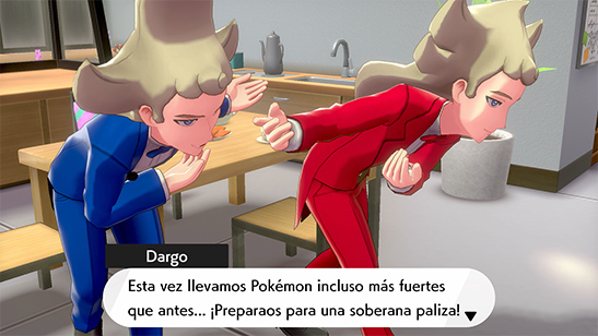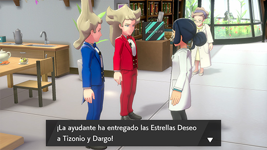 Sonia os llama por teléfono porque Tizonio y Dargo están en el Laboratorio Pokémon en busca de Estrellas Deseo para dinamaxizar más Pokémon. Cuando llegas, te enfrentas a ellos en un combate doble con Paul.