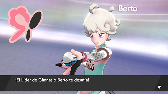 Cuando llegas a Pueblo Plié te encuentras con Berto, que ya se ha ocupado de los Pokémon dinamaxizados. Seguidamente, te reta a un combate.