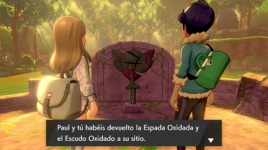 Tras vencer a Paul aparece Sonia, que os muestra su libro y os recomienda devolver la Espada Oxidada y el Escudo Oxidado. Cuando lo hacéis, se activa el Buscanodos de Sonia y aparecen Tizonio y Dargo, que se presentan como miembros de la familia real de Galar y toman la Espada Oxidada y el Escudo Oxidado. Para recuperarlos, os enfrentáis a ellos en combate.