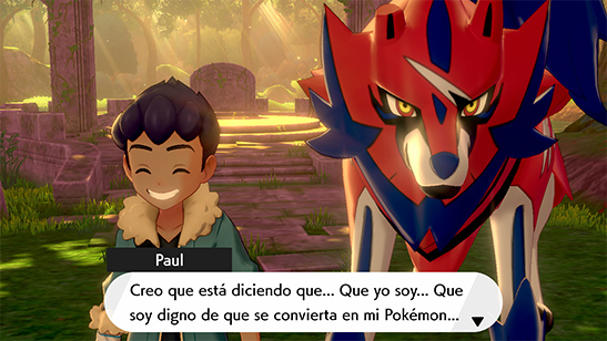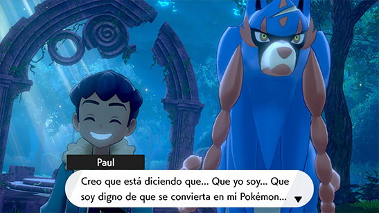Al llegar a las profundidades del Bosque Oniria, Zamazenta (Pokémon Espada) o Zacian (Pokémon Escudo) se calma por fin y permite que Paul lo capture. Con la nueva adición a su equipo, Paul te reta a un combate.