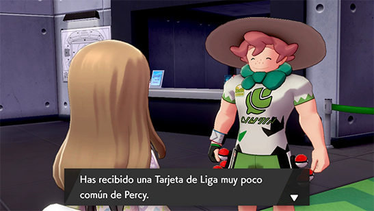 Tras derrotar al Pokémon obtienes la Tarjeta de Liga muy poco común de Percy. Tizonio y Dargo declaran su intención de seguir obligando a los Pokémon a Dinamaxizar, y Nerio se une a tu equipo para detenerlos. Sonia aparece y reporta más seńales alteradas tanto en Pueblo Amura como en Ciudad Pistón.