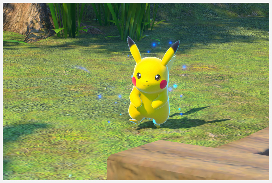 Atrae a Pikachu al abrevadero con Blanzanas y hazle una foto mientras bebe agua En la ruta alternativa, atrae a Pikachu con Blanzanas al Neo-One de la izquierda y espera a que se suba y se ponga a hacer equilibrios sobre el mismo |