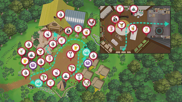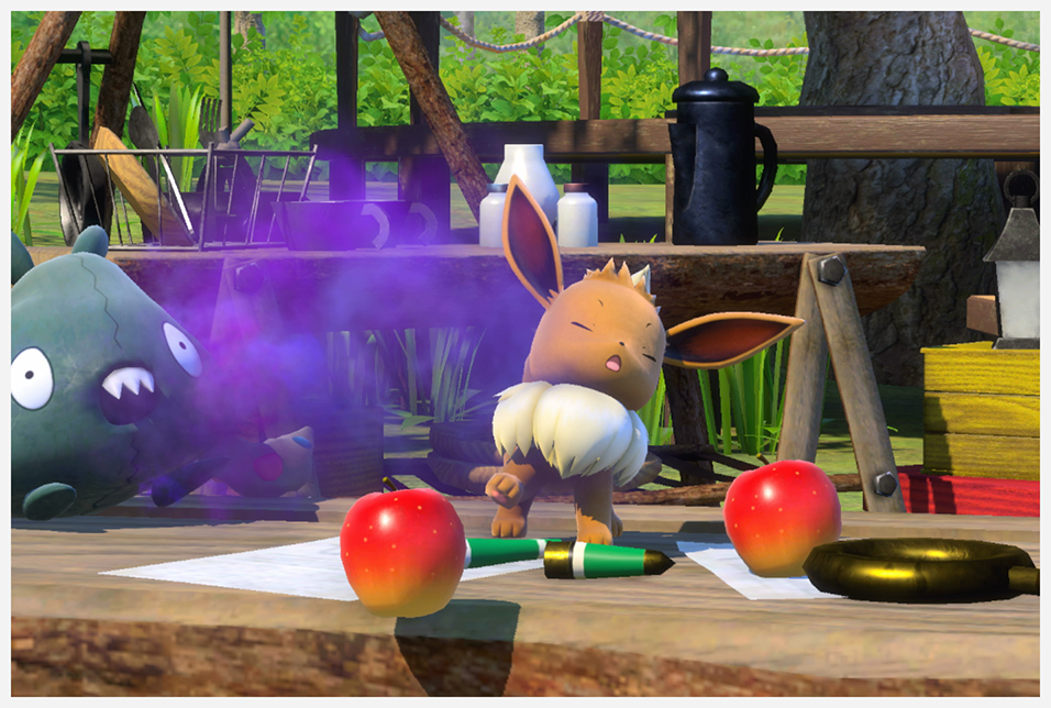 Tirar Blanzana y hacer foto mientras Trubbish lanza vaho venenoso (sin Eevee) Saltando de sorpresa tras usar Orbe Lúmini en la hoguera (ruta alternativa) Bailando en el centro del campamento tras usar la Melodía, para lo cual debes hacer que Sudowoodo vaya primero activando la Cristaflor cuando se encuentra cerca y esperar a que Rattata le siga (ruta alternativa) |