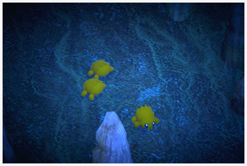 Tirar Blanzana y hacer foto en el momento Chapoteando en el agua en la ruta de las Lagunas Subterráneas Tras usar el Radar en la ruta de las Lagunas Subterráneas |