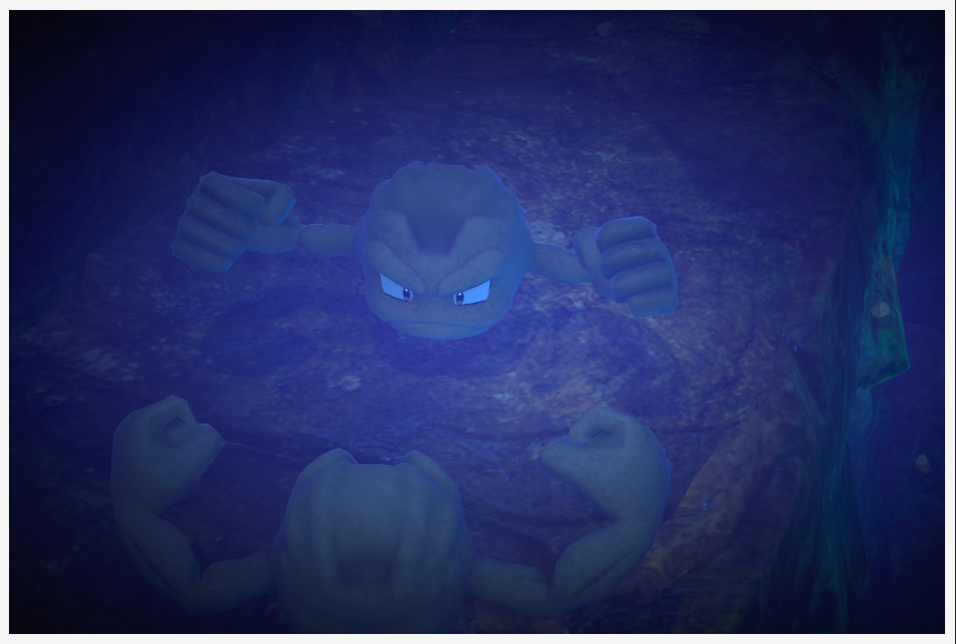 Peleándose con otro Geodude, en el momento de golpearle |