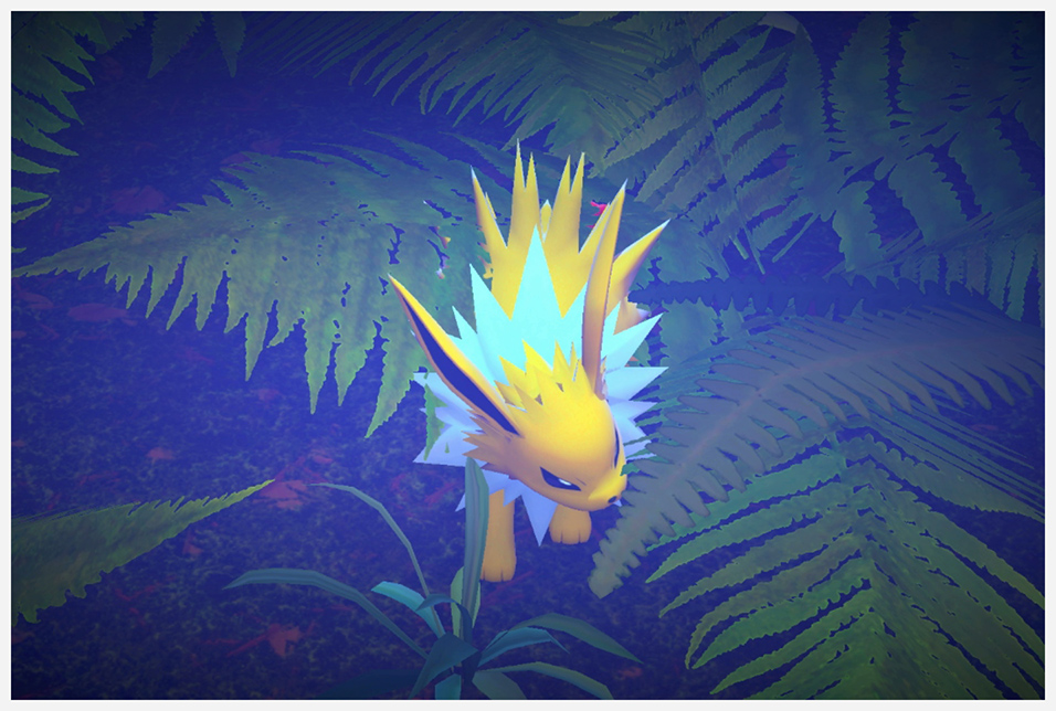 Jolteon aparece en la Caverna Quimbamba de estas maneras: