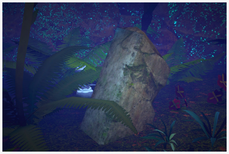 Estas ruinas se encuentran en las profundidades subterráneas. Se cree que las piedras luminosas del techo forman parte de ellas, y tal vez incluso nutrían de luz a las plantas de la zona. |