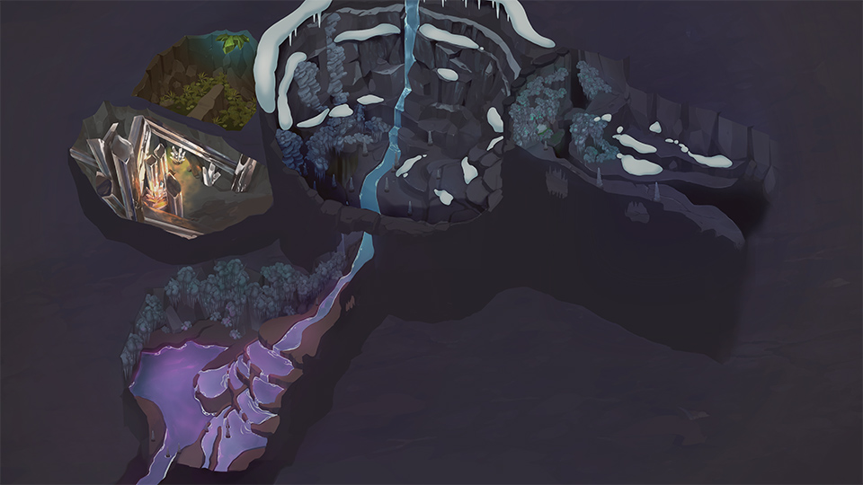 - Cristales Gigantes: Esta zona oculta se desbloquea en la ruta principal usando el Radar a la derecha para bajar a otra cueva, ya en Nivel Investigador 3. En esta cueva se encuentran más Pokémon. Es la ruta por defecto en Nivel Investigador 2.