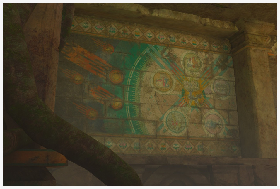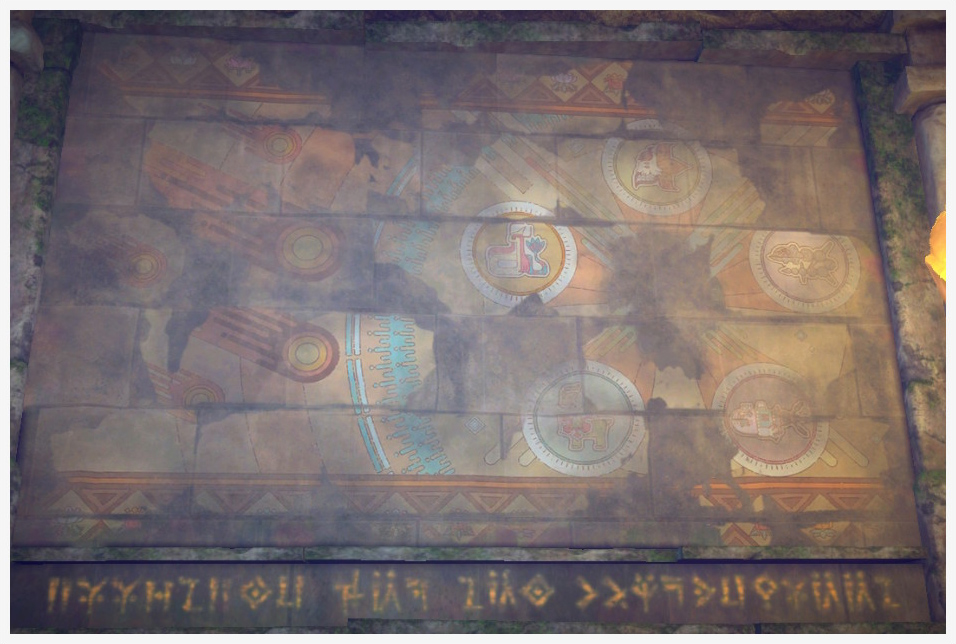 Es un mural que ilustra la leyenda. Aparecen representados los seis Pokémon Lúmini que aplacaron el meteorito. Es factible que sea el mismo de la Caverna Quimbamba.