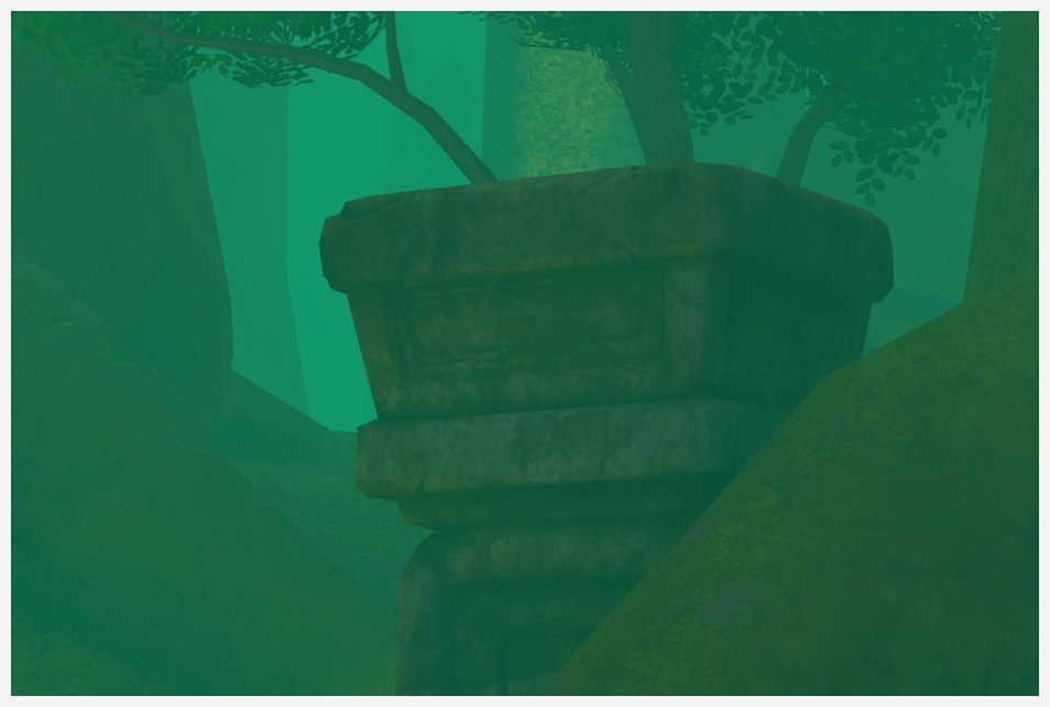 Estas ruinas se encuentran en las profundidades subterráneas. Se cree que las piedras luminosas del techo forman parte de ellas, y tal vez incluso nutrían de luz a las plantas de la zona. |