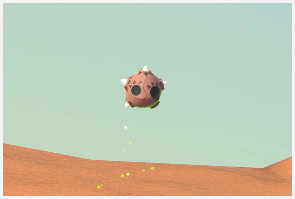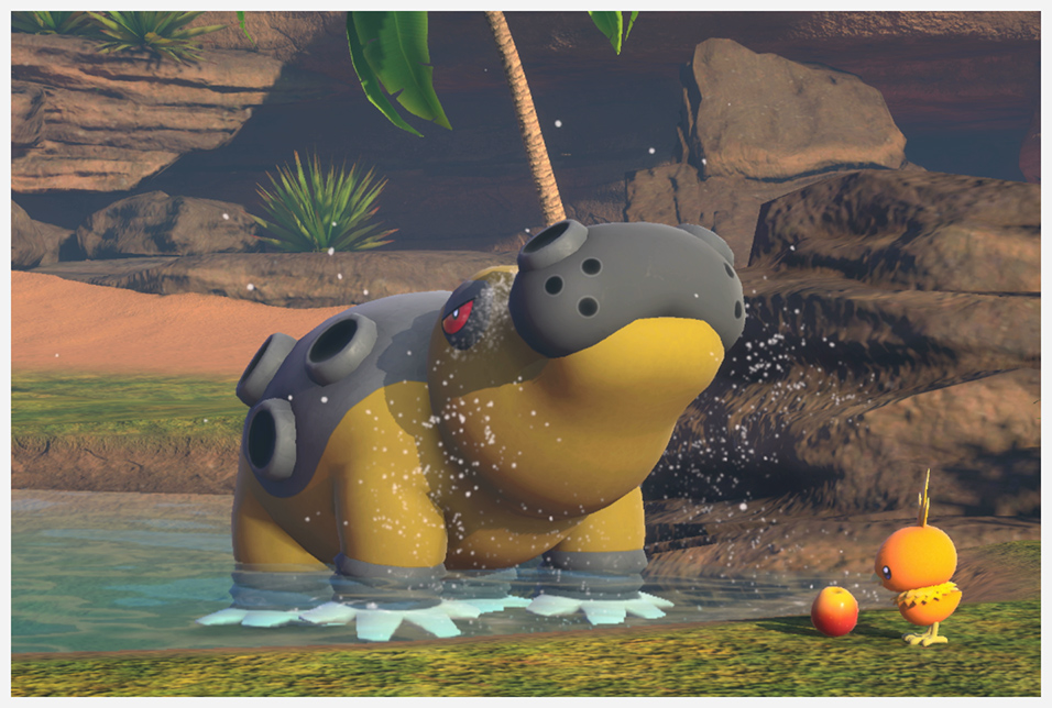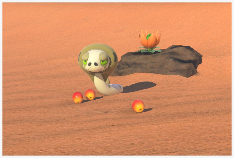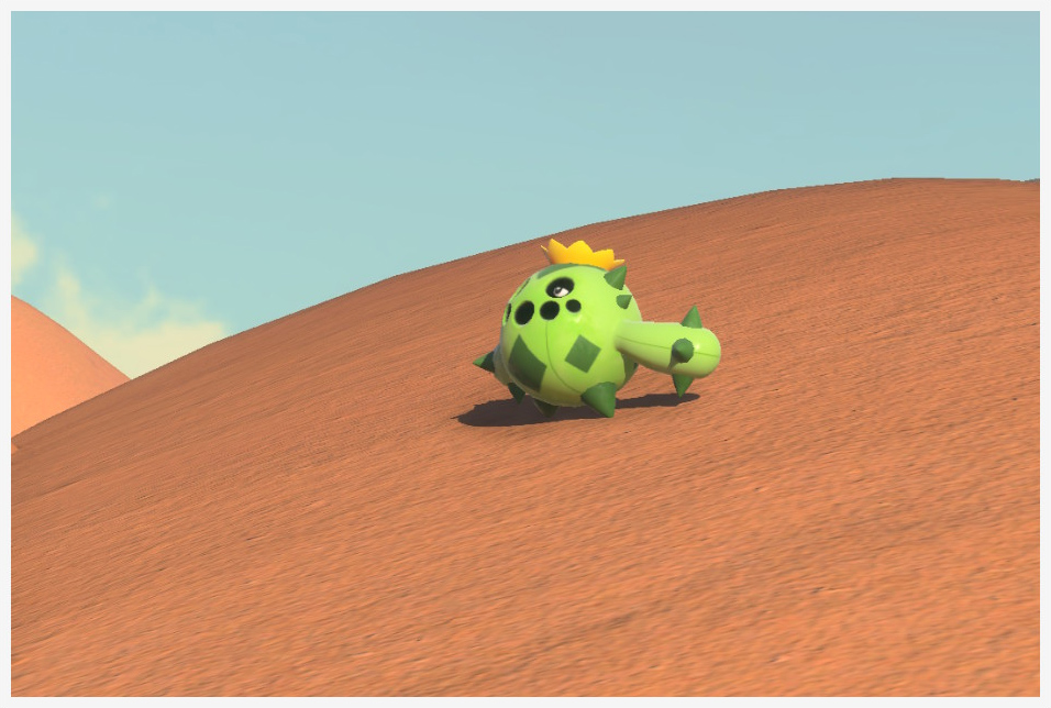 Rodando en la arena tras pasarse el juego Lanzando arena de su espalda tras usar Orbe Lúmini |