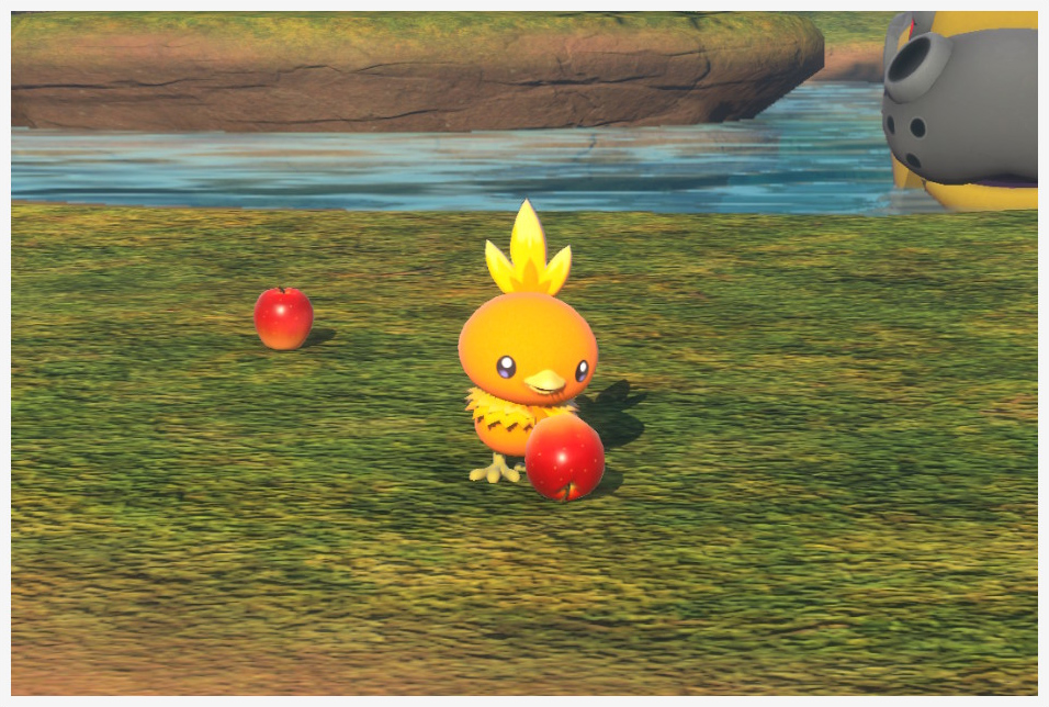 Cogiendo una Blanzana del suelo tras liberarlo del remolino Usar Orbe Lúmini después de que entregue la Blanzana a los Trapinch para que use Danza Dragón |