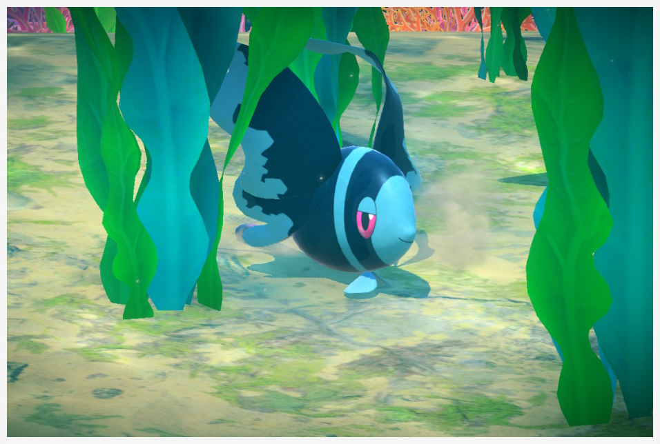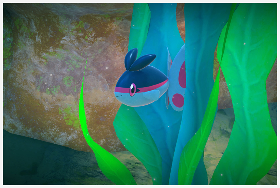 Finneon moviéndose feliz al principio de la zona Echándose burbujas con Alomomola tras usar Orbe Lúmini a los dos al comienzo de la zona Activa la Cristaflor del inicio de la zona para que se acerque y muestre felicidad Activa la Cristaflor bajo los cuatro Finneon que nadan juntos en la ruta de la Gruta Marina |