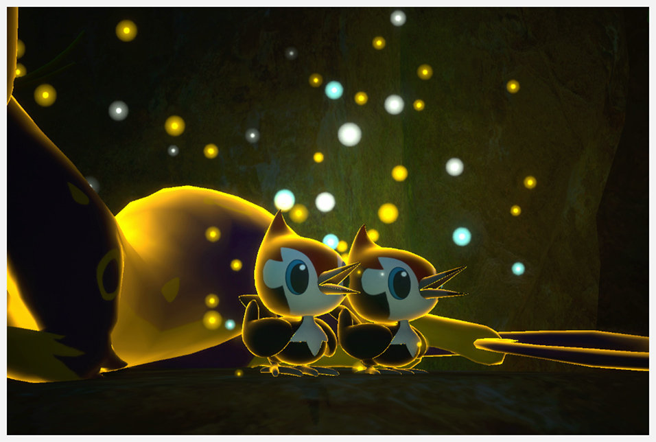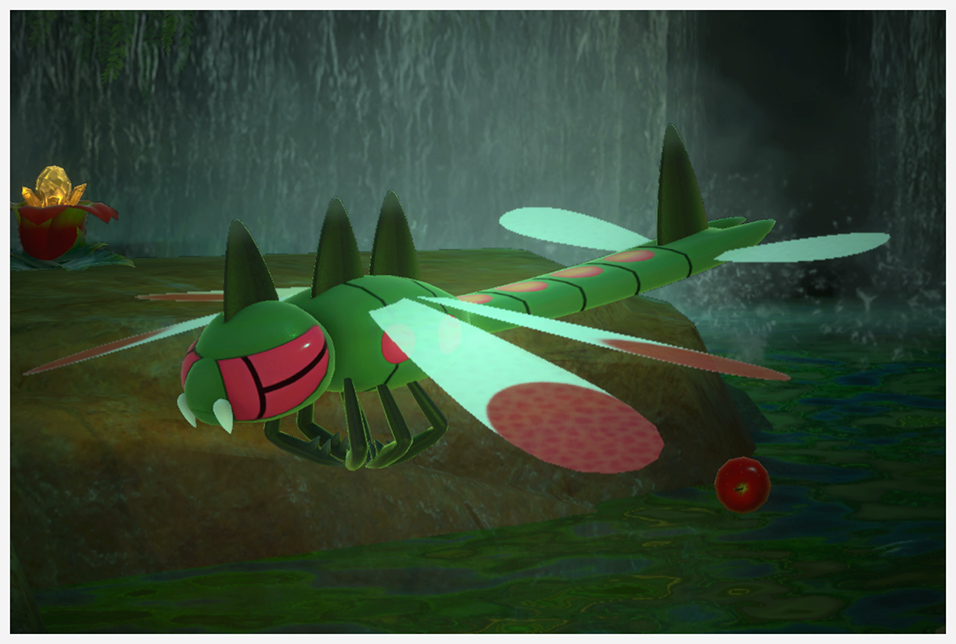 Enjambre de Yanmega tras activar la Cristaflor al final del Nivel Investigador 1. Para ello debes usar la Melodía justo antes de tomar la ruta de la Charca para que aparezca un Yanmega a luchar contra los Ariados de la Charca y usar Orbe Lúmini para que Yanmega gane la pelea |