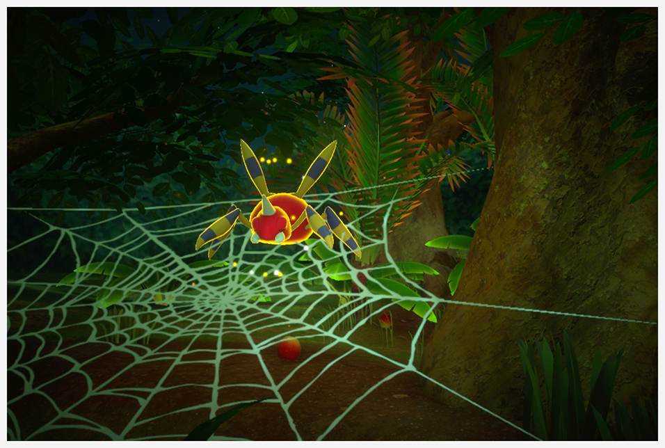 Tirar Blanzana y hacer foto en el momento Pareja de Bounsweet durmiendo a la izquierda del comienzo de la zona Estando felices en la telarańa |