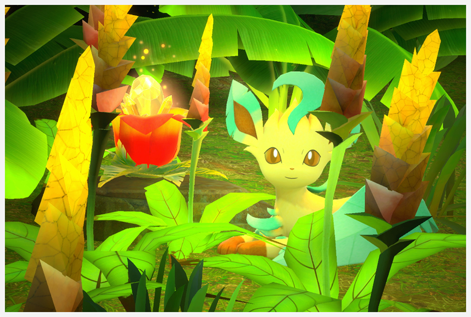 Asustados al ver el Neo-One acercándose Activar la primera Cristaflor o usar Orbe Lúmini en Leafeon para que se ponga a jugar con Bounsweet |