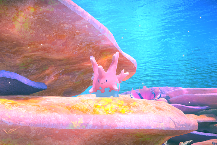 A los Luvdisc les encanta meterse entre las ramillas de Corsola. Seguro que puedes encontrarlos juntos.