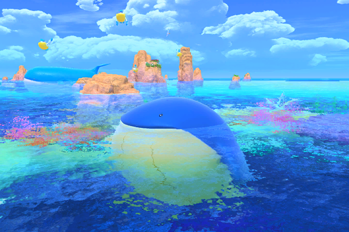 Saca una foto de Wailord girando usando muchos Orbes Lúmini.