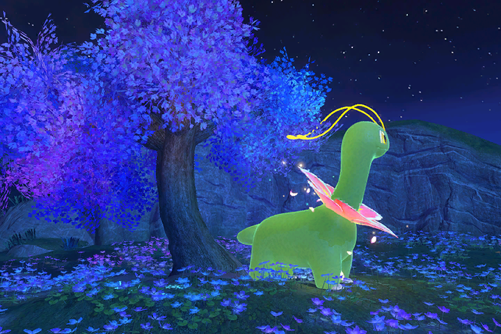 Hay cierto Pokémon que no se deja ver fácilmente, pero cuando cae la noche puedes encontrarlo durmiendo en compañía de Torterra.