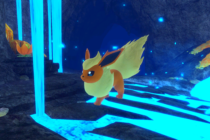 Saca una foto de Flareon con sus llamas activas tras darle de comer una Blanzana.