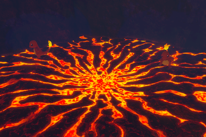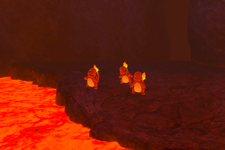 Hay Charmander por todos lados en el volcán. ¿Crees que podría pasar algo especial si logras encontrar a muchos?