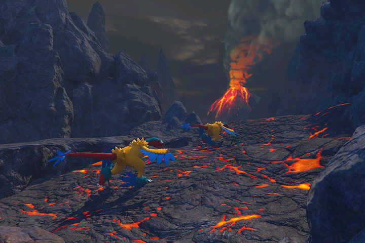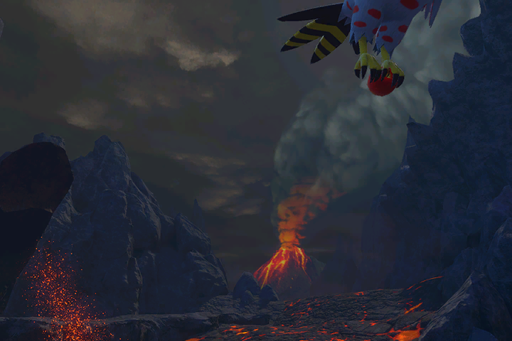 Por lo visto en la zona del volcán hay un Pokémon considerado legendario. Quizá te convenga alzar la vista y fijarte bien en el cielo.