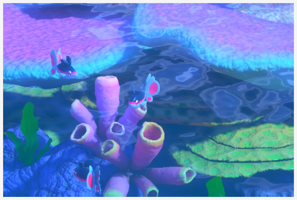 Mientras se come una Blanzana Alegres en la orilla del mar del Nivel Investigador 2 Junto a Corsola mirándose entre sí Saludando junto a Pyukumuku tras usar el Radar |