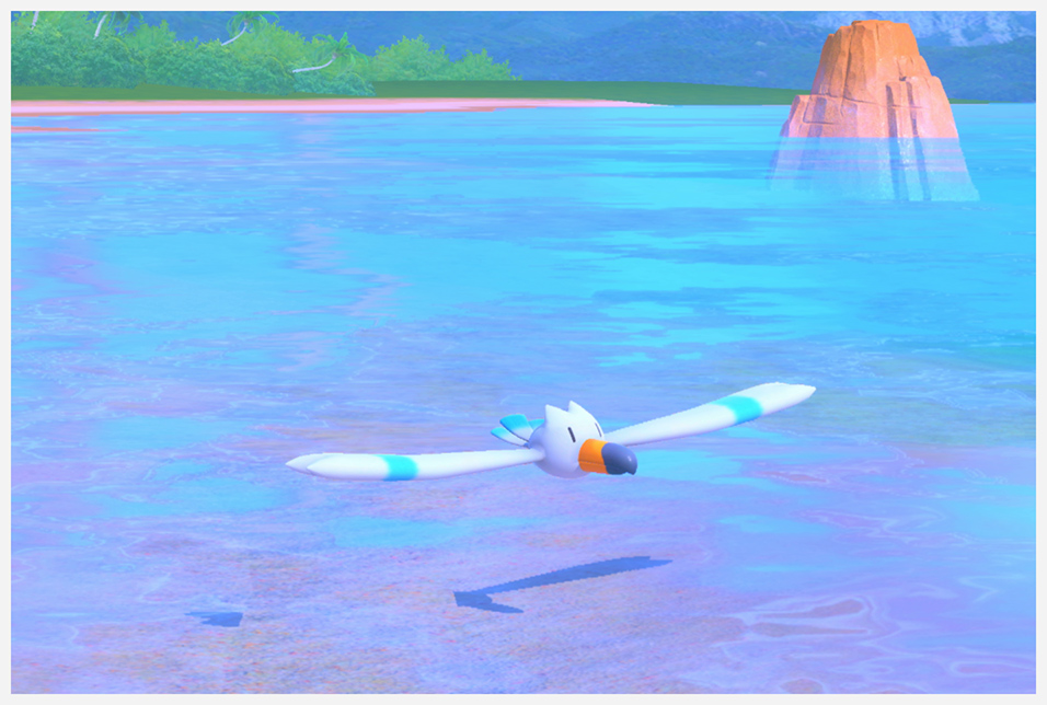 3 Wingull cayendo en picado tras pasar por el arco de piedra |