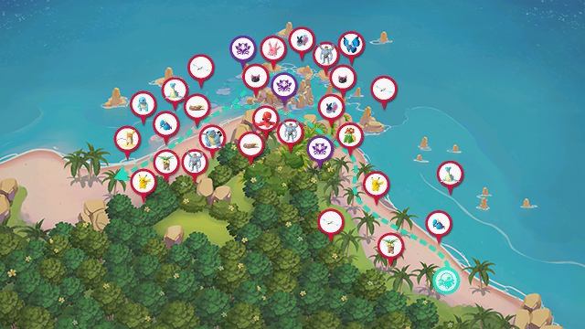 Reúne a los 3 Exeggutor de la primera playa juntos mientras duermen. Para ello debes atraer con Blanzanas a los 2 Exeggutor despiertos hacia el dormido. |