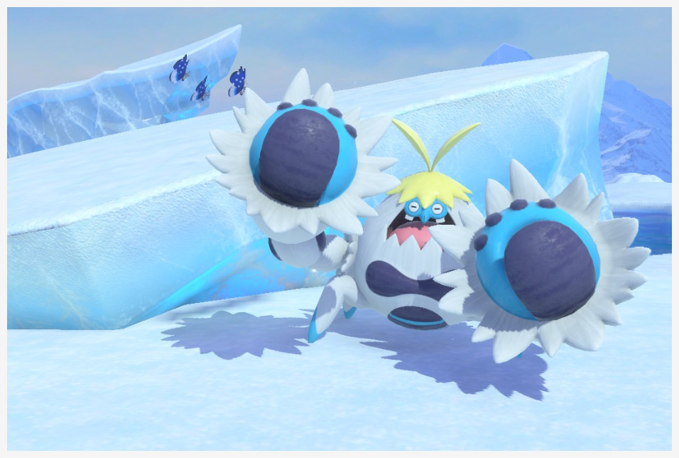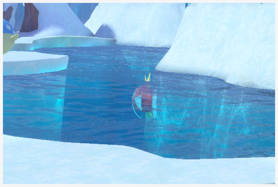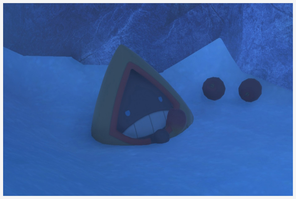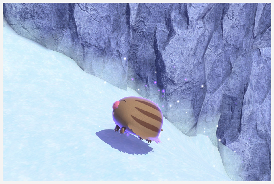 Tirar varias Blanzanas al Beartic dormido del final de la ruta principal y hacer foto cuando se despierta Sacando a Cubchoo del montón de nieve en el inicio de la zona |