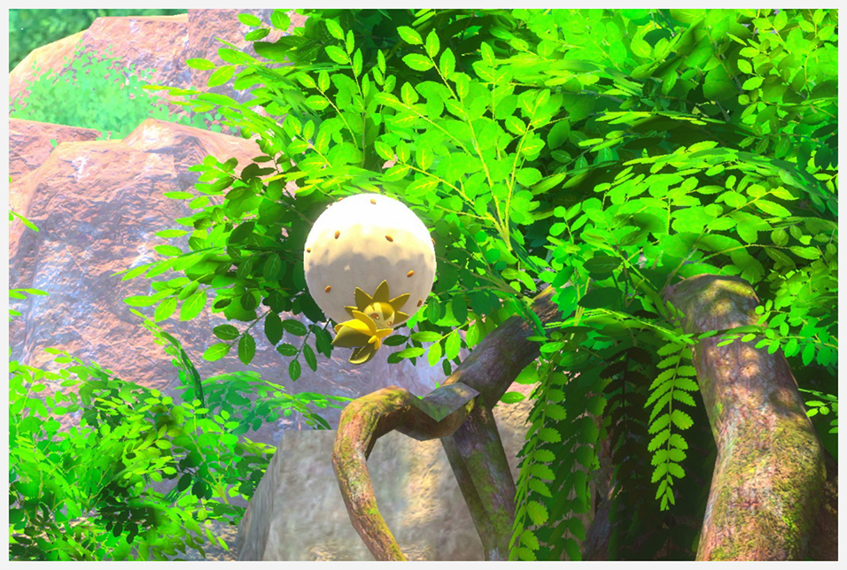 Mientras usa Psicorrayo tras lanzarle una Blanzana Colgando de una rama en lo alto de un claro al final de la zona |