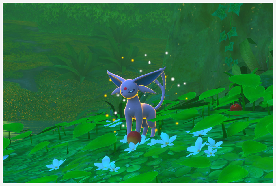 Espeon aparece en la Zona Lúmini de Bellus de estas maneras: