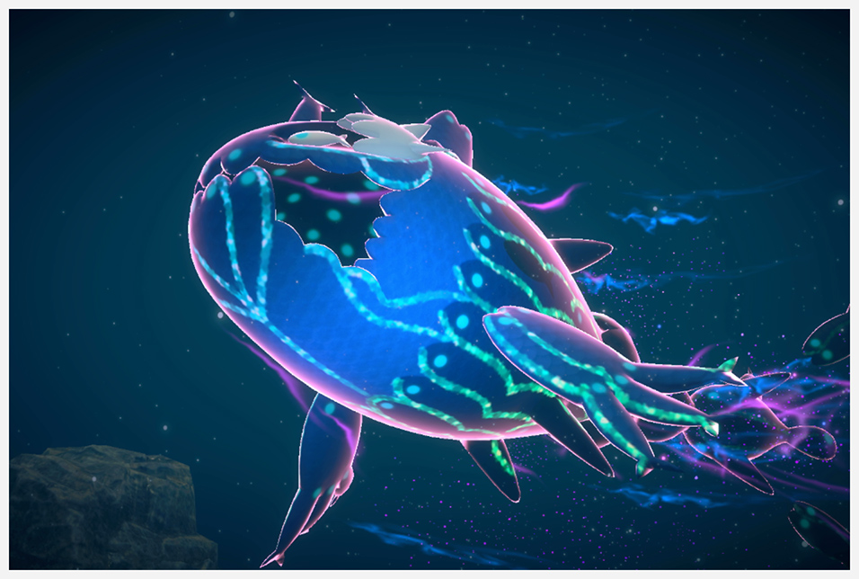 Desde dentro de la boca de Wishiwashi (Forma Banco) tras usar Orbe Lúmini |