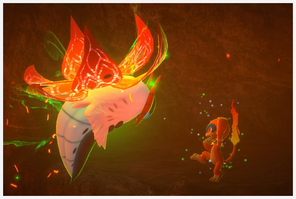 Volcarona en estado Lúmini en el túnel Ambos Volcarona posados en el pilar en estado Lúmini Haciendo cabriolas en el aire con el otro Volcarona |